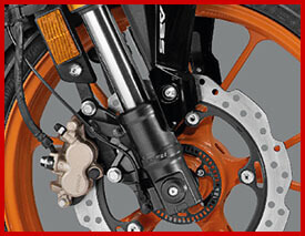 The first-in-segment Golden Upside Down (USD) Front Fork lets you handle any kind of circuit or road. The great-looking superior & advanced suspension adds to the racer look of the bike.
