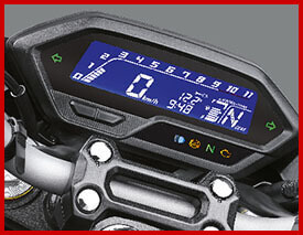 The perfectly positioned meter lets you know exactly how fast you’re going as you assert your dominance. Be it night or day, see your info clearly with the 5-level Illumination Control on the crystal meter. Also, with the Gear Position Indicator, Battery Voltmeter and Service Due Indicator, stay above the rest.
